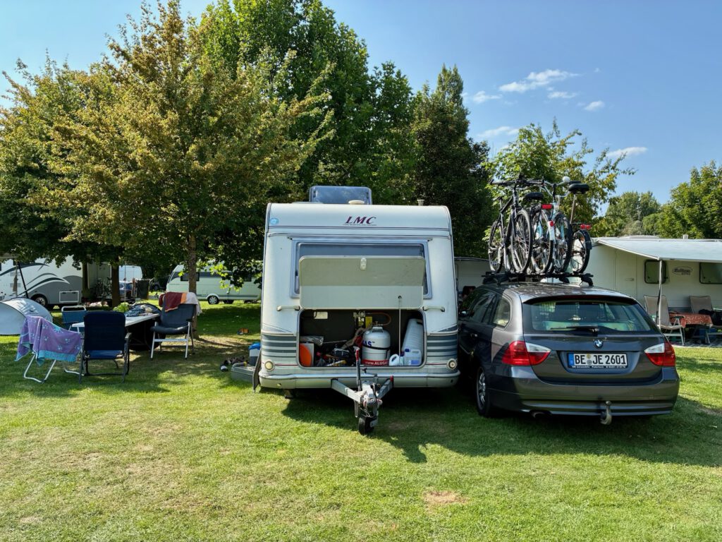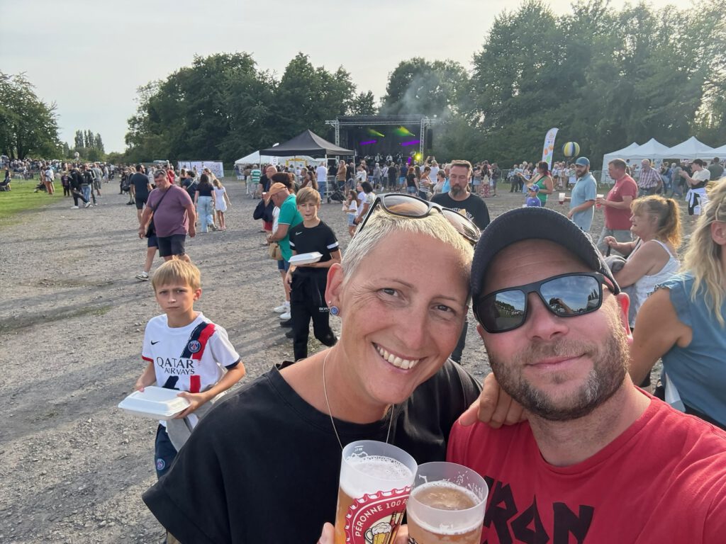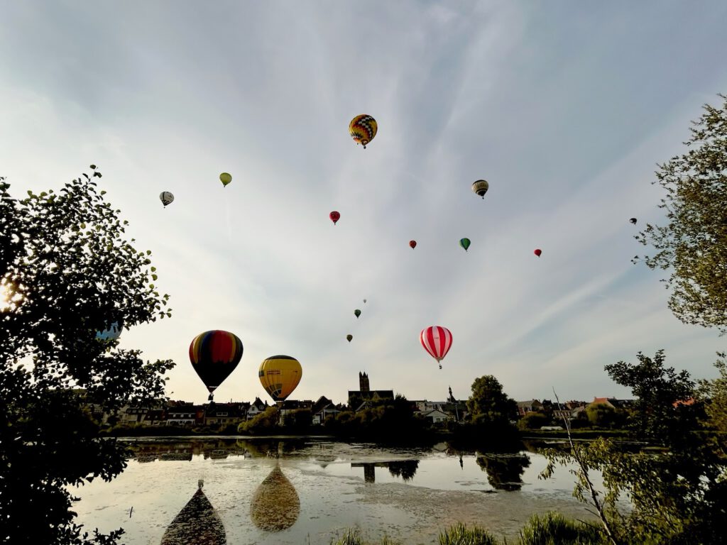 Der letzte Stopp 2025. Kurz vor der belgischen Grenze in Peronne. Der Campingplatz ist nichts besonderes, ist aber mit allem ausgestattet, was man braucht: Bar, Restaurant, Snack Bar und Pool und Broverkauf. Hier schlagen mit uns viele andere für eine Nacht auf der Durchreise ihre Reiseunterkunft auf. Unser Highlight ist das Mongolfiadenfest in Peronne, das wir eher zufällig auf unserem abendlichen Spaziergang entdecken. Ein feines französisches Fest