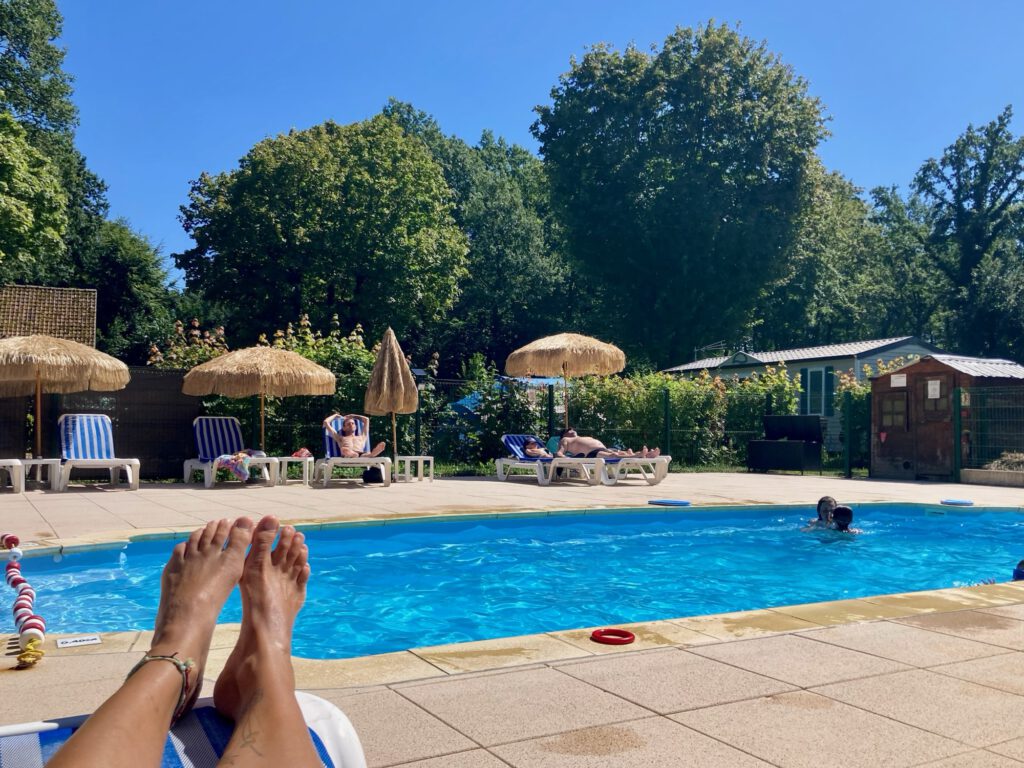 2024 ist dieser Ort der letzte auf unserer Reise. Schon die Anreise ist ein Spektakel. Aufgrund eines Flohmarktes stecken wir mit unserem Gespann irgendwann fest, zwei Franzosen leiten uns aber durch eine Einbahnstraße, etwas anderes wäre allerdings auch nicht mehr möglich gewesen. Auf dem Campingplatz gibt es gerade ganz viele junge Katzen, einen feinen Pool und eine gut besuchte Tränke. Wir sind also bei den Schˋtis gelandet, einige Erlebnisse lassen einem zu dem Schluss kommen, dass der Film viel Wahrheit erzählt 😉. Für eine Zwischübernachtung lässt es sich hier gut aushalten.
